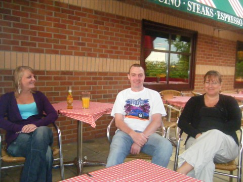 shrek has come up with the idea that we meet up and go somewhere on the 3rd wed. of every month. this month we went to frankie and bennys at braintree so after making a few local calls there was myself, shrek, slim and barry we meet up at tollgate and cruised to braintree where we was meet by buz, dee and gang where we had a good chin-wag and a laugh mainly at my expense of me trying to get into the pie wagon with no success and it sure did beat sitting at home heres a few pics