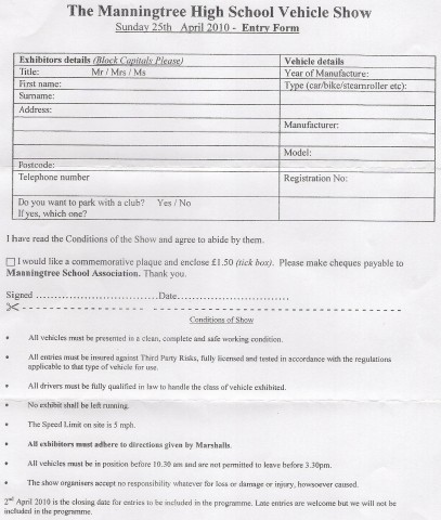 Hi all I received the entry form for manningtree today if anyone wants a copy i am emailing the co-ordinator in the next couple of days to request some more forms if you let either myself or stevie know i'll get ya one.