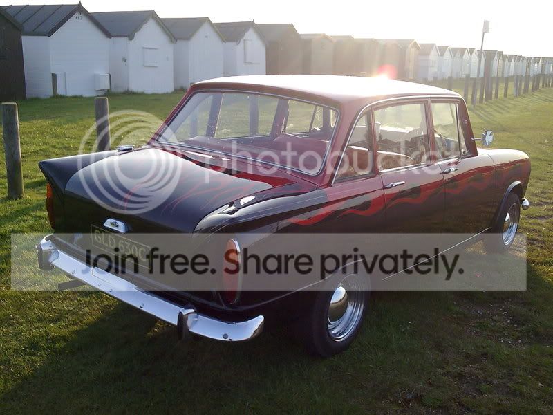 Your right, not many been done, dont know why, they are a perfect shape for modifying. My first ever custom job was a Super Minx! My mate's girlfriend left him and he was depressed so he moved to southend and we customised it to cheer him up, it was a week before hemsby in may 1992 so did have much time. It was green so we got some pink aerosols and some white ones and started masking up. at the end of the weekend, after a few vodka's and a few rolls of masking tape we had the Grot Rod. Green with pink scallops fading to white, pink and green tuck and roll seats, pink wheels, whitewall tyres. Nutty car, finished it off outside the chalet in Hemsby.