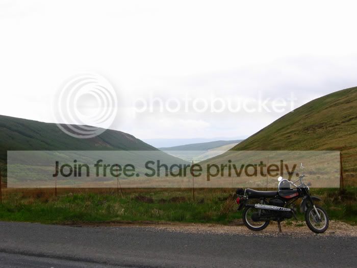 here is the bike at the top of a very big hill on the Scotish Isle of Arran.
